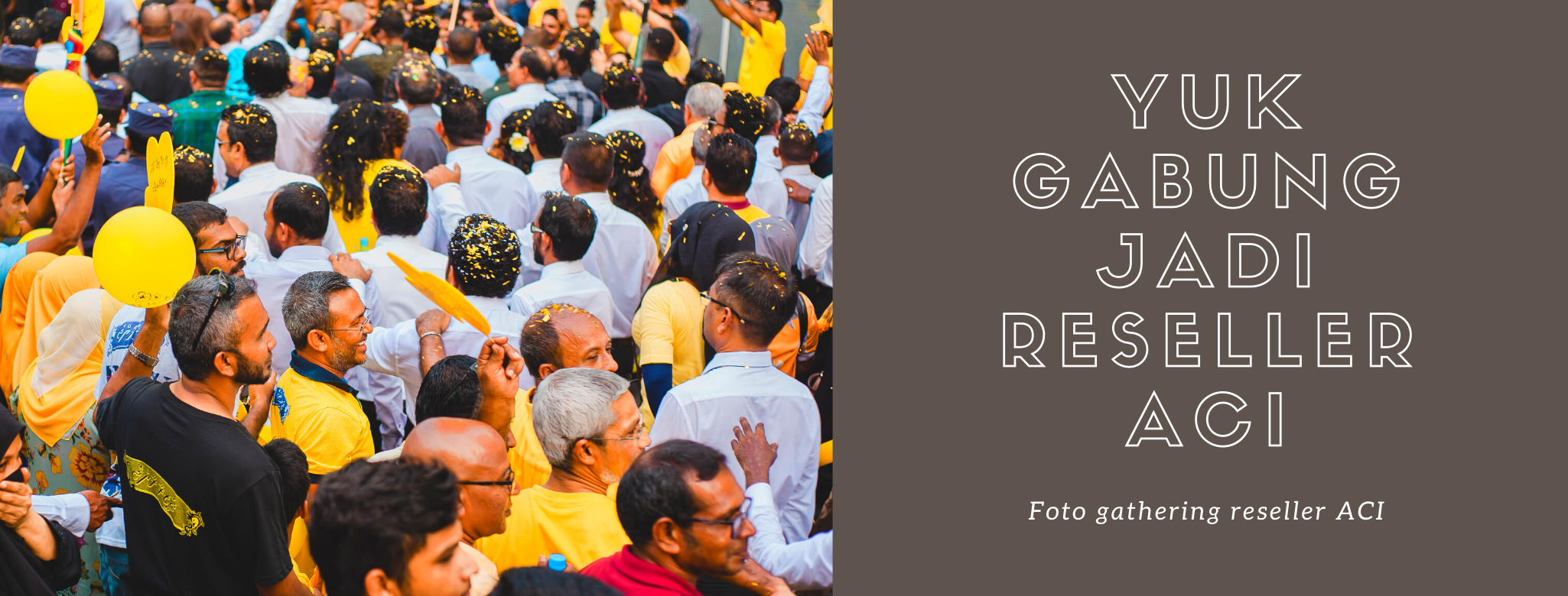 Ajakan ini bisa bebas ya, misalnya ajakan untuk bergabung jadi member, ajakan untuk merekomendasikan, atau ajakan jadi reseller / dropshipper. Tipsnya adalah jangan hanya mengajak. Tapi pastikan orang takut kehilangan kesempatan untuk ngelakuin hal ini! Di contoh banner ini, ACI tulis kalau KUOTA TERBATAS. Dan lanjutkan dengan ajakan untuk melakukan klik, kontak via chat, dan lain-lain.